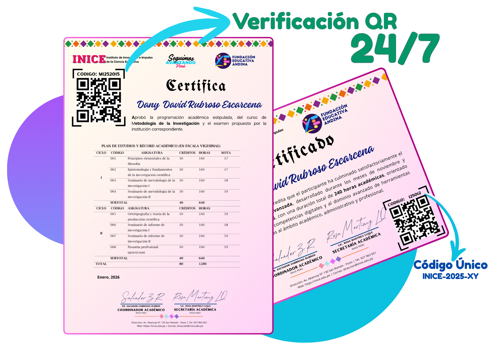 Certificados válidos con código único y verificación mediante QR